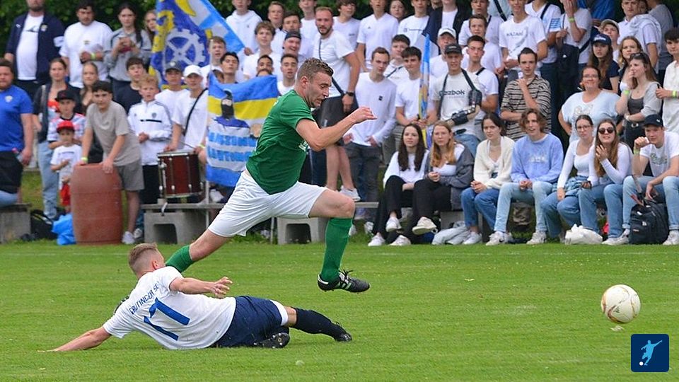 Wiedemann hält einfach mal drauf. Aus etwa 40 Metern knallt er den Ball an die Unterkante der Latte. Er springt noch einmal auf, aber dann ins Tor. Wahnsinn! Pentenried ist wieder dran.