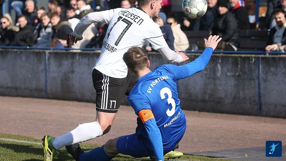 Nach einem Freistoß gibt es ein Durcheinander im Strafraum der Gäste. Ein Klärungsversuch wird vom Verteidiger abgeblockt und landet vor den Füßen vor Schüler.