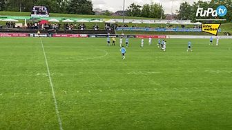 TOOOOOR für die DJK Straubing: ein Einwurf fliegt von rechts in die Box und wird nur unzureichend geklärt. Der Ball fällt Sgraja vor die Füße, welcher aus spitzem Winkel mit dem rechten Außenrist abzieht und die Kugel irgendwie im kurzen Eck versenkt.