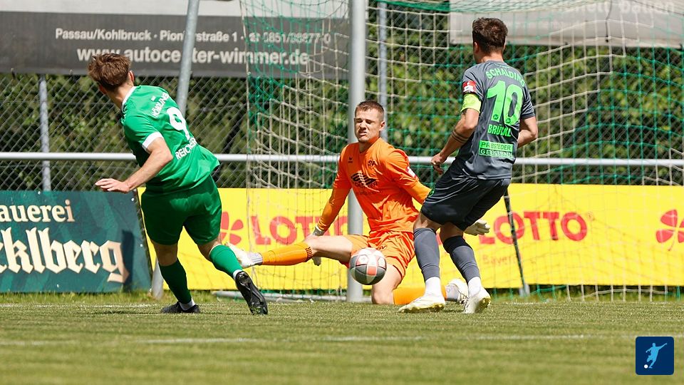 Bisher gab es keine wirkliche Torannäherung der Nördlinger, doch dann läuft Reicherzer auf das Tor zu, die Schaldinger verteidigen - warum auch immer - nicht und der Schuss geht rein